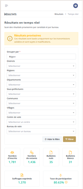 Centralisez, visualisez et analysez toutes vos données électorales en temps réel. Notre plateforme transforme les données brutes des bureaux de vote en intelligence actionnable.